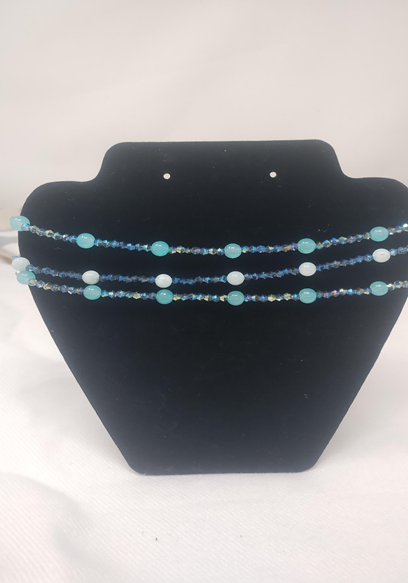 3 layer ocean/cloud blue combimed metallic blue bicone bead chocker necklace