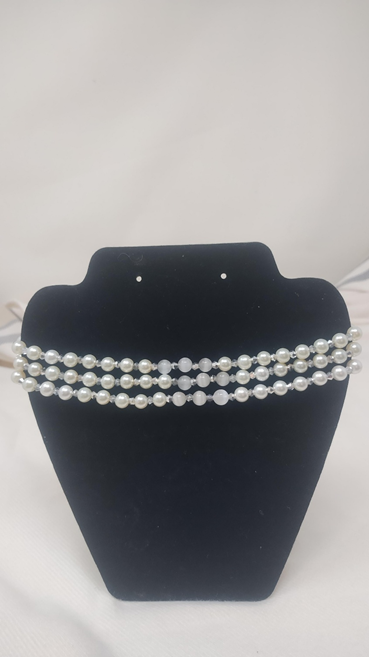 3 layer white glass pearl/white cat eye beads between metallic silver bicone beads choker necklace