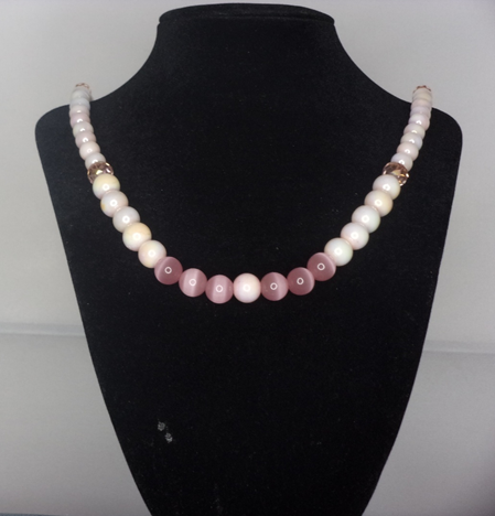 Be the first to review “Pink glass pear/pink rondell/pink baby cat eye necklace”