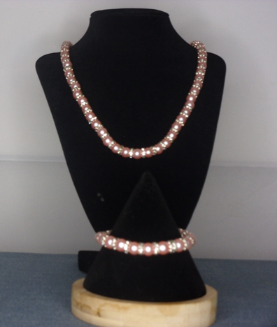 Pink rose crystal spacer necklace and bracelet